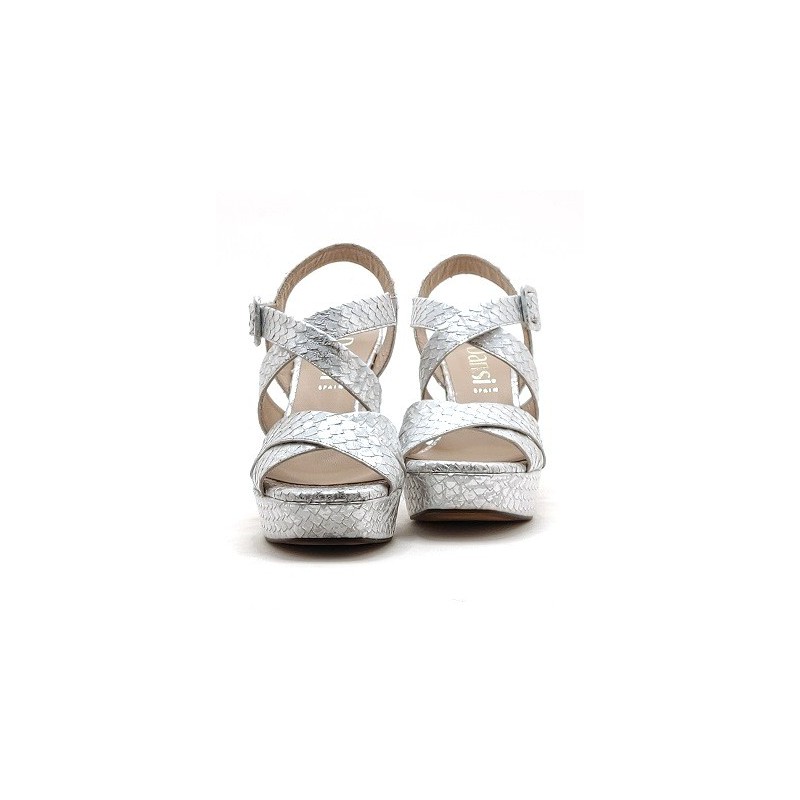 Quan una noia pensa a sortir pensa a Kaliope, meravellosa sandàlia fabricada amb pell plata combinable amb els teus outfits. La seva plataforma et farà sentir la comoditat de la petjada. 100% made in Spain.