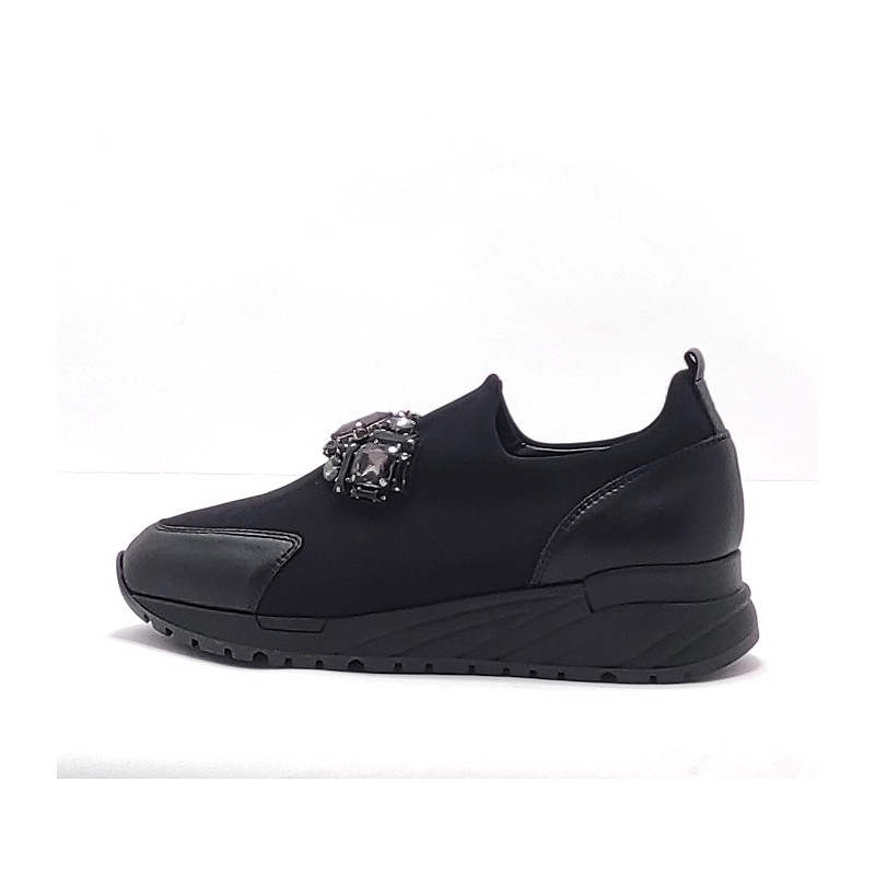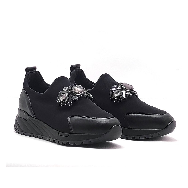 deportiva en color negro con adorno de piedras, que lo hace mas femenino. Facil de combinar y cómodo de caminar.