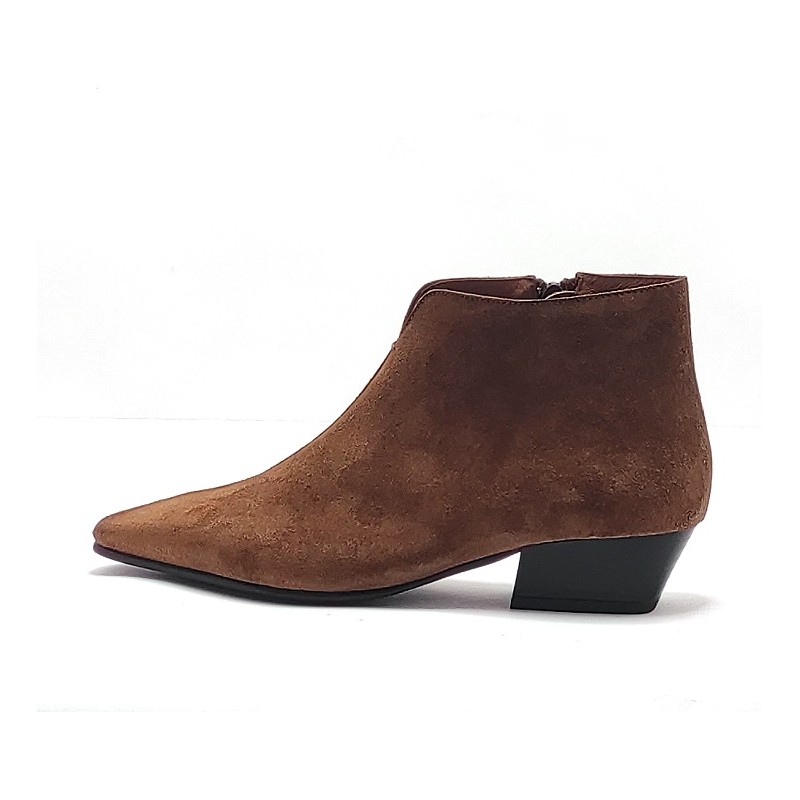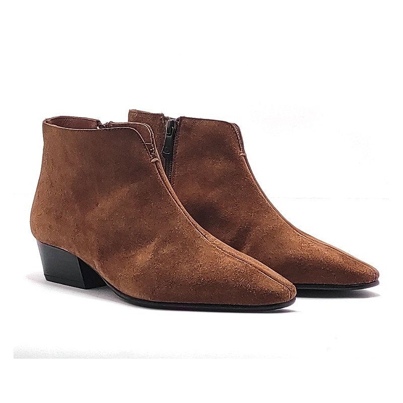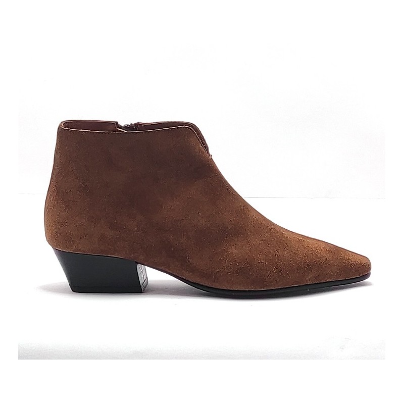Altura tacón: 3,5 cm | Corte y forro: 100% piel | Suela: Caucho flexible | Material y color: Serraje mogano