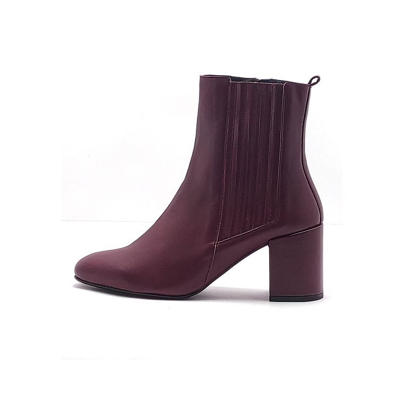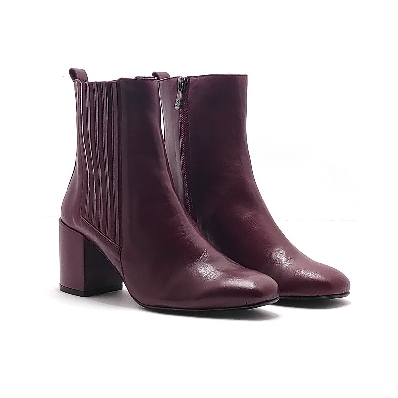 El botín Thalia es la pieza esencial para una mujer que busca sofisticación y versatilidad. Confeccionado en piel mestizo burdeos, un acabado en un rico tono burdeos que se adapta perfectamente al pie, su diseño tipo Chelsea con paneles laterales elásticos. Su tacón bloque de 7 cm ofrece una altura impresionante y una gran estabilidad, estilizando la figura sin sacrificar el confort.