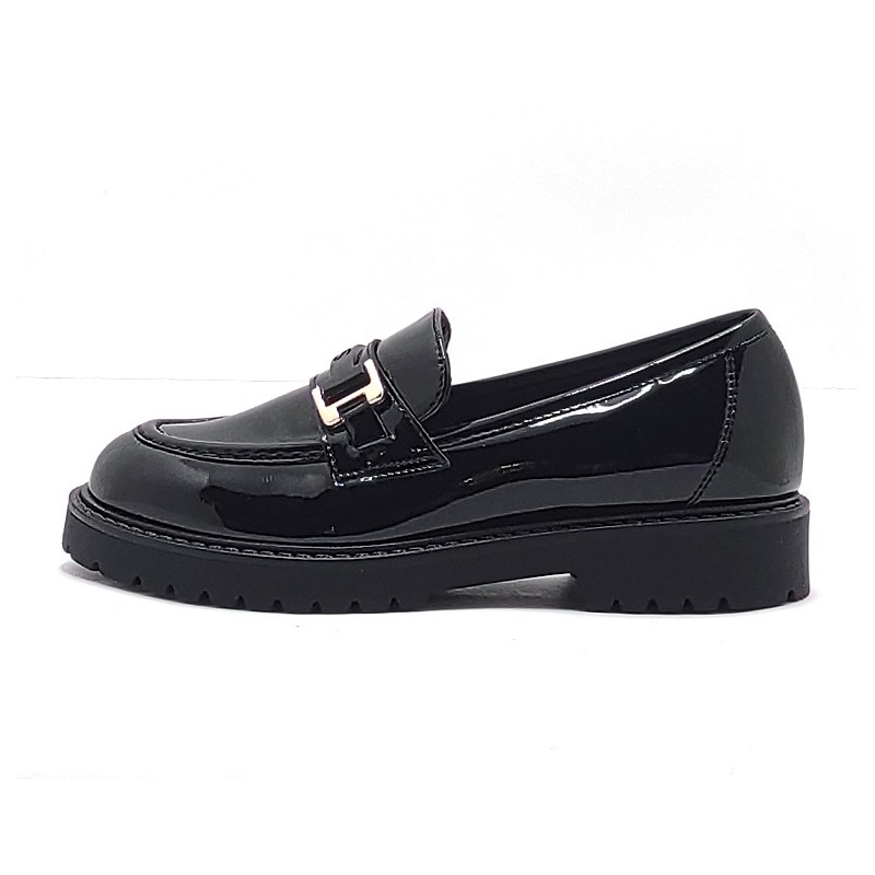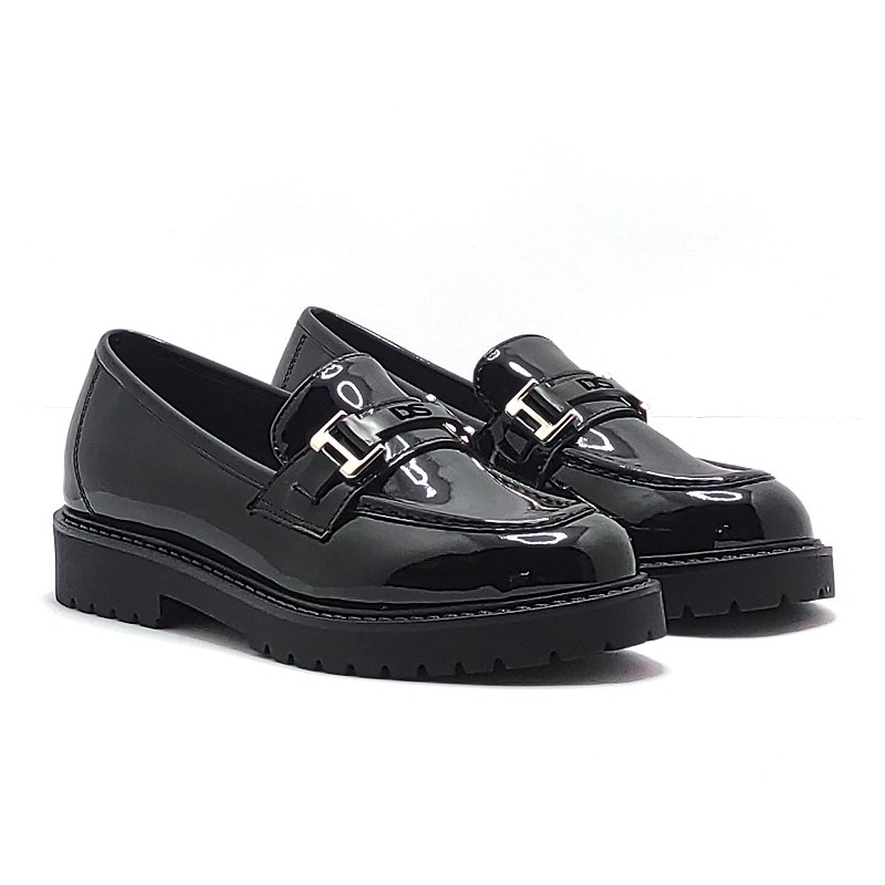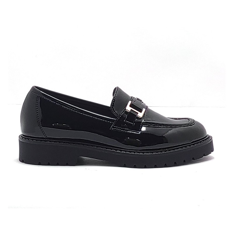 Altura tacón: 1,5 cm | Suela: Caucho flexible | Material y color: Piel charol Negro