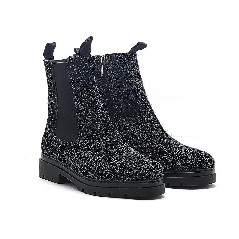 Sanja es un botín de diseño informal lleno de matices, su altura de caña lo hace ser también una bota de media caña, va forrado de coralina para tener una protección extra del frio y su plantilla extraible hace posible ajustar tu plantilla propia si la necesitas. Son tus botines negros favoritos