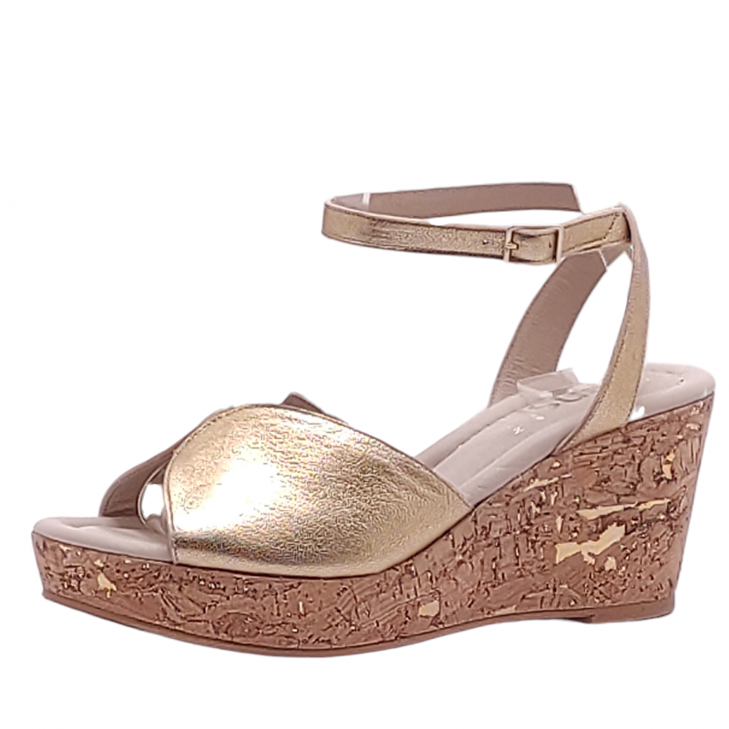El verano es dorado, y te presentamos la sandalia con cuña ORO, te hará disfrutar todos tus momentos, sentiras la comodidad al cminar con sus 3cm de gel que lleva su planta.