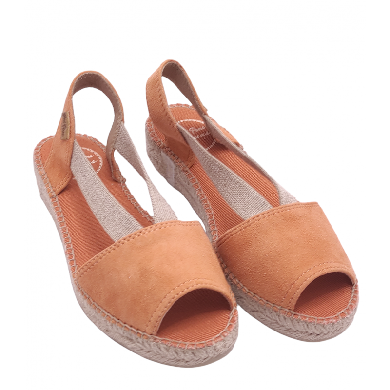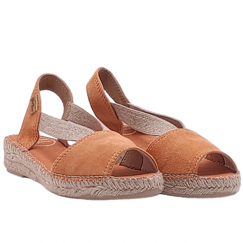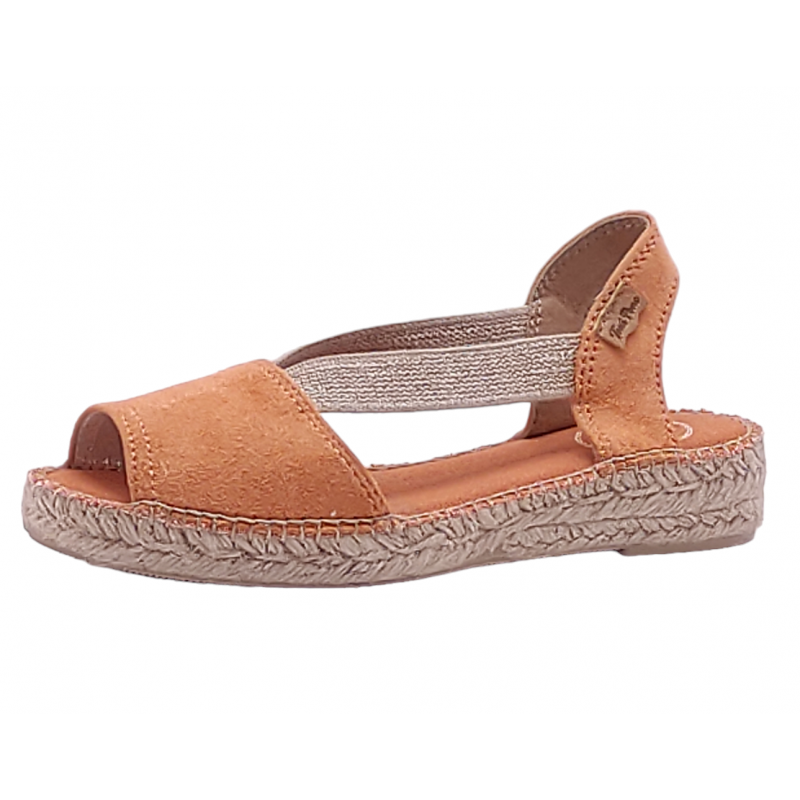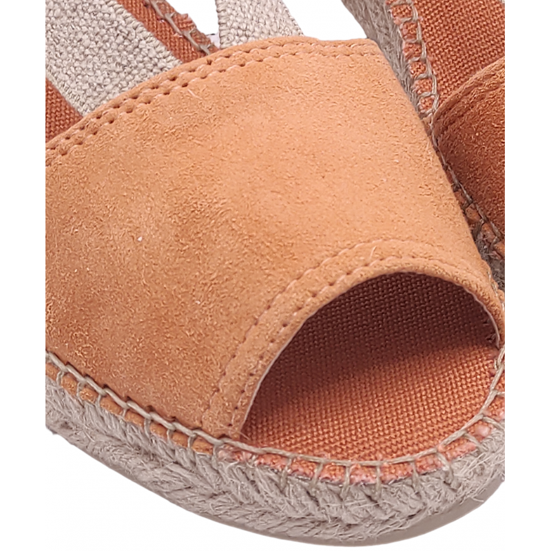 ELLA. Esta alpargata en ante para mujer se elabora en tonos lisos. Cuenta con dos tiras elásticas laterales que dan una sujeción óptima al pie. La planta interior está forrada tejido para mayor comodidad. La unión del ante y la suela está cosida a mano con un hilo de algodón de alta calidad.